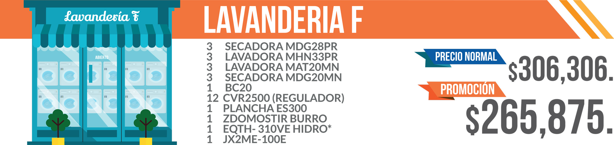 * Precio del Paquete “LAVANDERIA F”. **Vigencia al 31 de Agosto de 2019 ó hasta agotar existencias. Aplican restricciones.